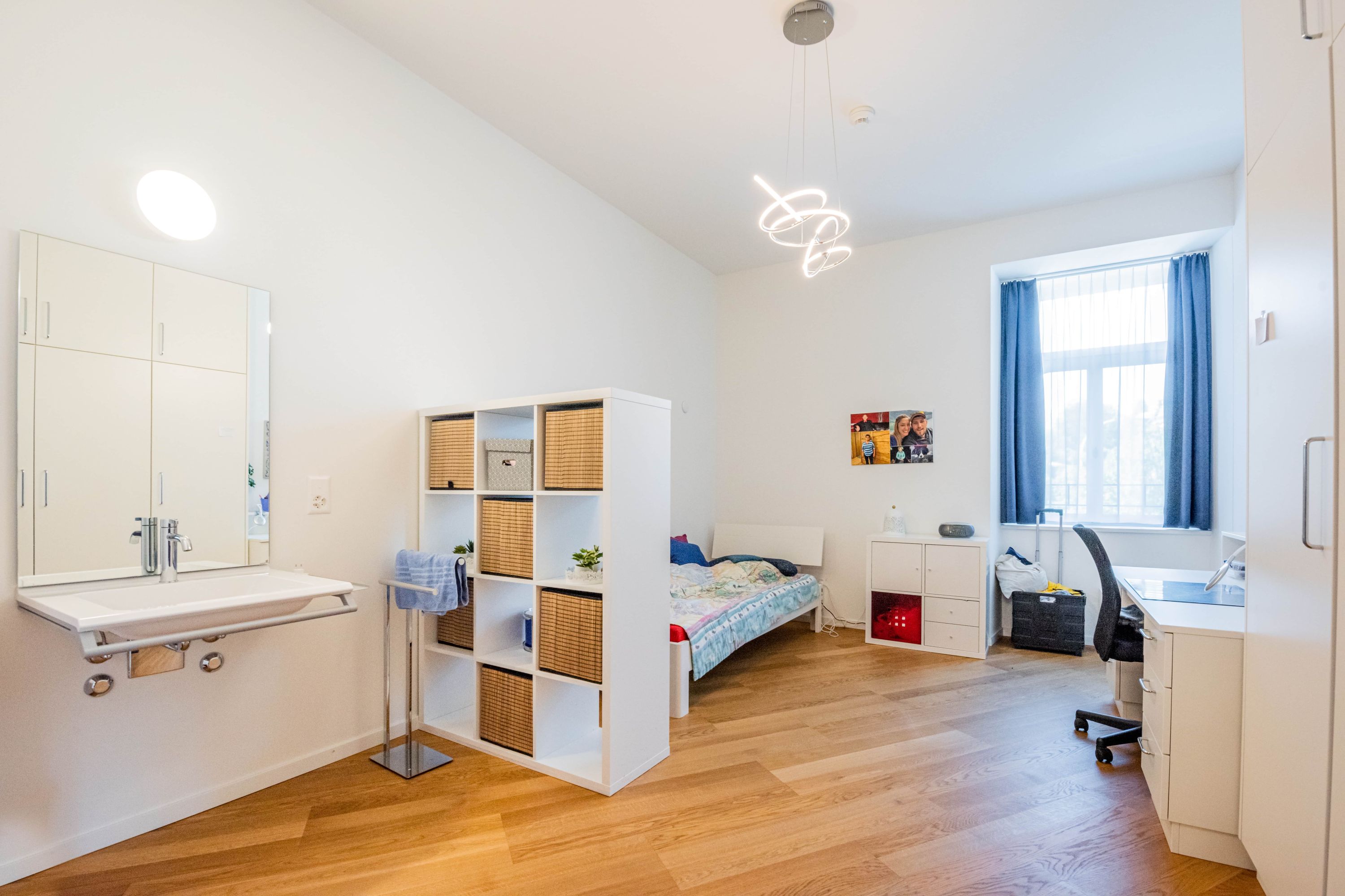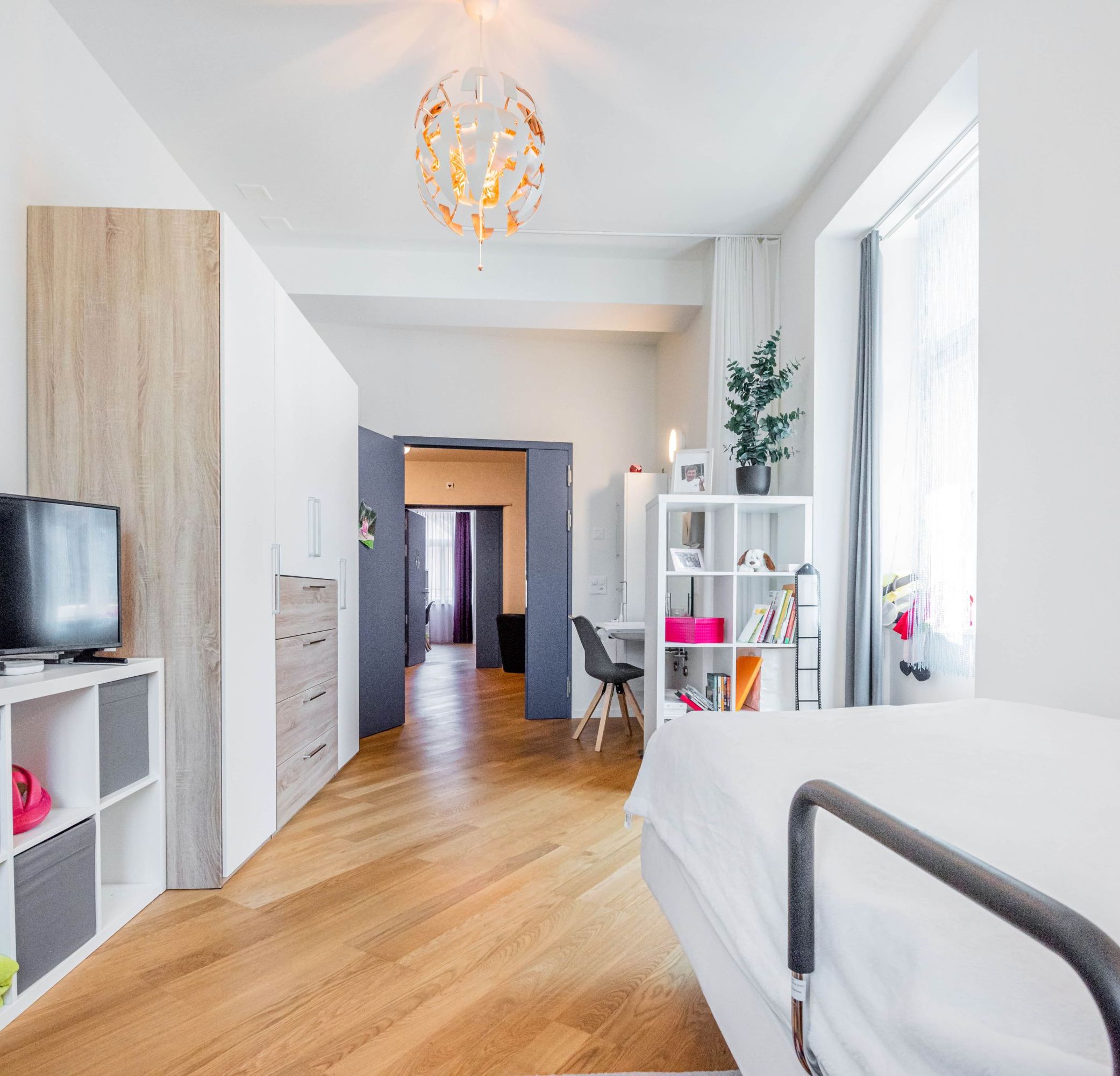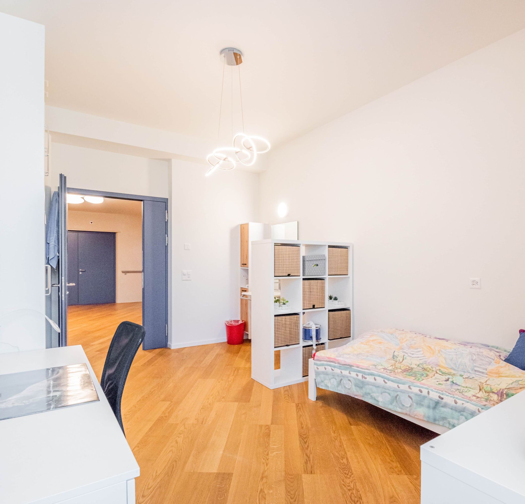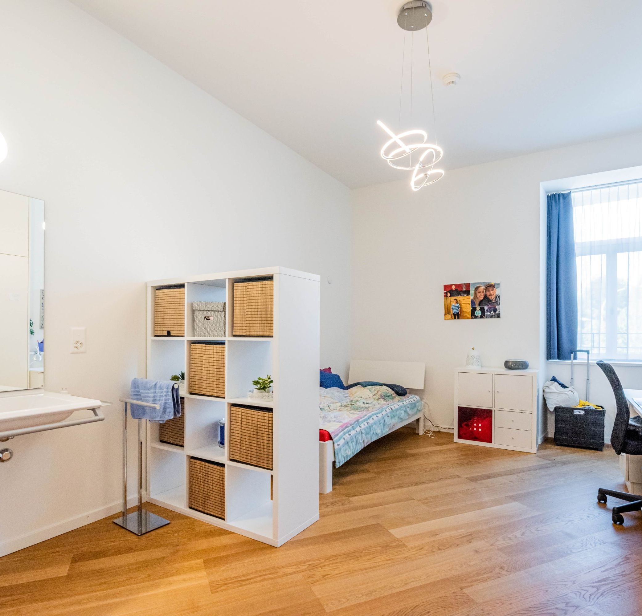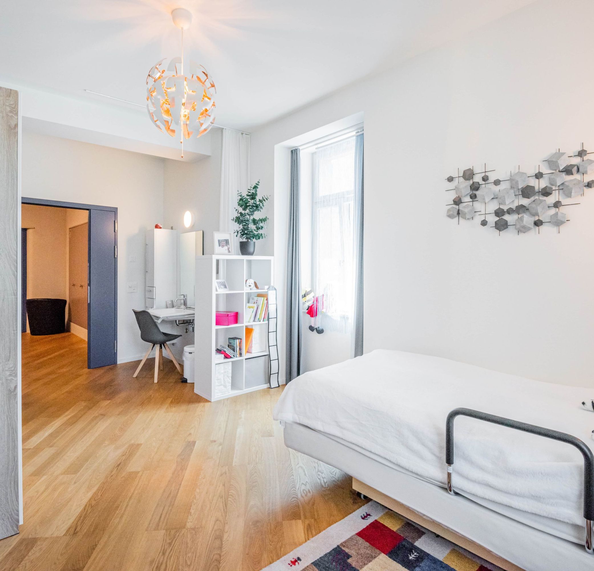 Die persönlichen Einzelzimmer sind alle modern ausgestattet. Die grosszügigen Platzverhältnisse mit vielen kleinen Details lassen viel Freiraum beim Einrichten und Gestalten.