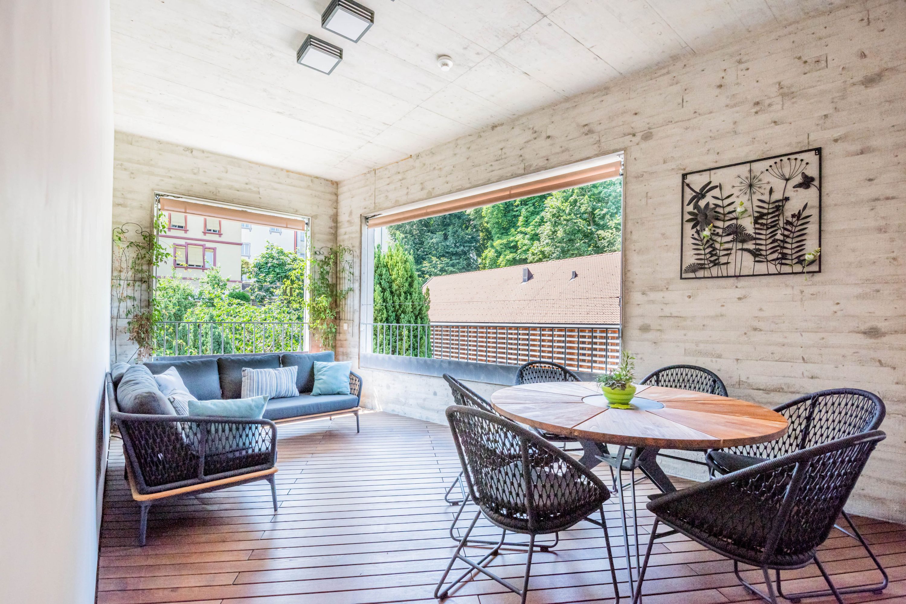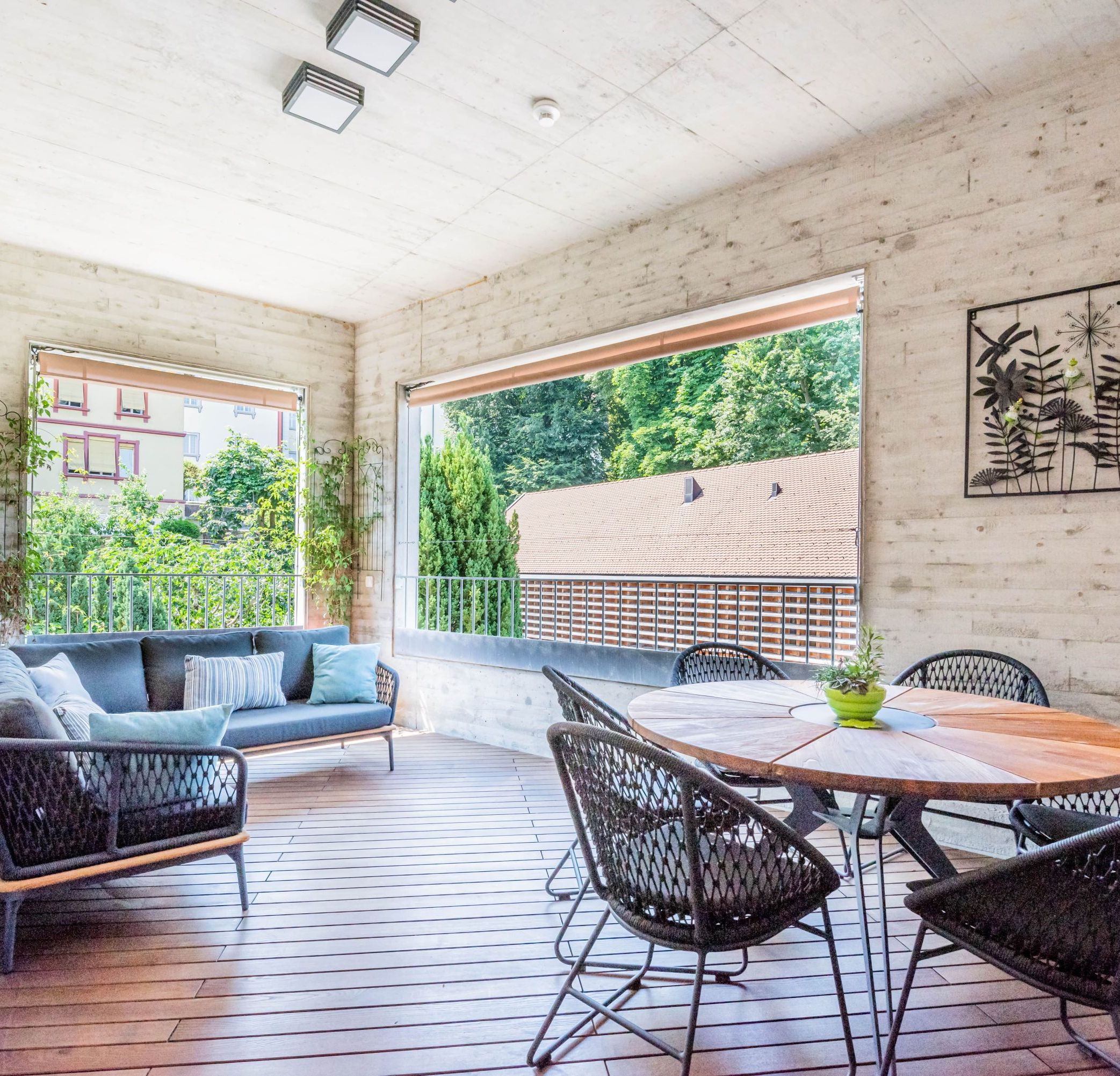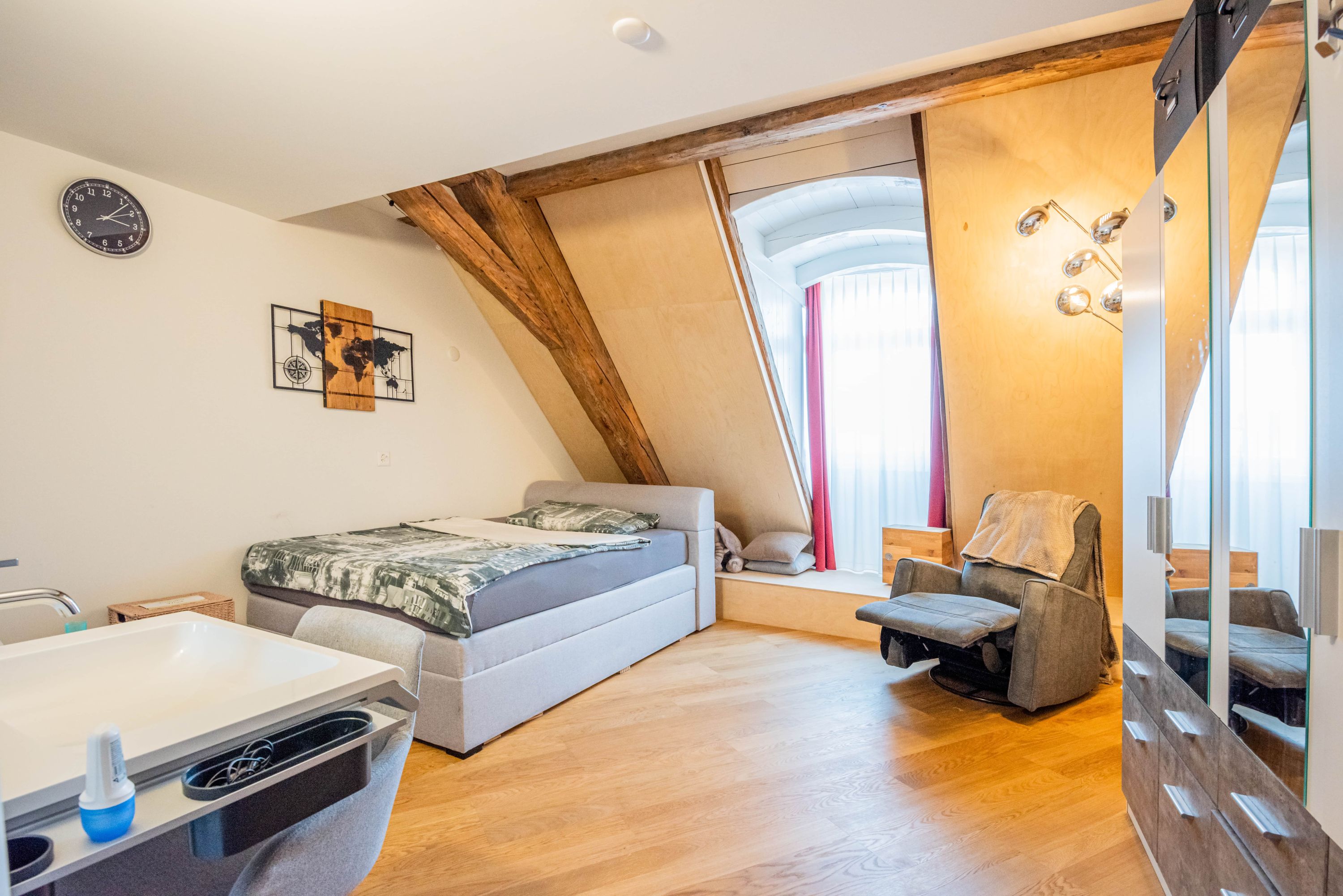 Das Wohnhaus besteht aus dem historischen, über 300-jährigen Roth-Haus und einem modernen, 2021 erstellten Anbau. Der Übergang vom Altbau zum Anbau ist aussen wie innen fliessend und wirkt sehr harmonisch. So trägt die einzigartige Architektur zu einem grossen Wohlfühlcharakter bei und lässt die Bewohnenden ein tolles Raumgefühl geniessen.