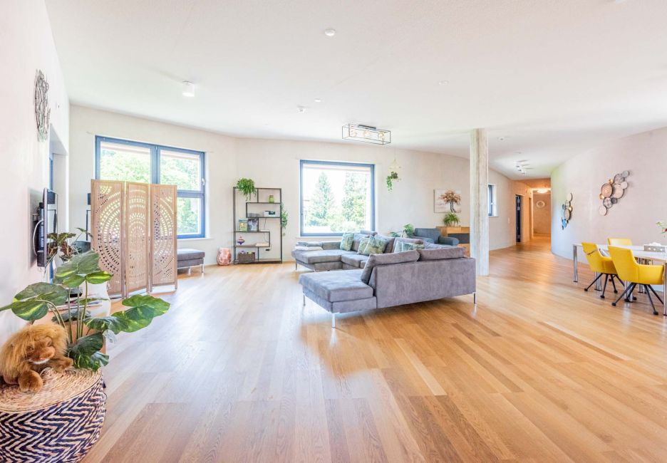 Jede Wohnung hat einen loftartigen Grundriss. Die Wohnungen umfassen einen offenen, grosszügigen Wohn- und Essbereich mit einer modernen Küche. Hier kann man feines kochen, gutes Essen genießen, entspannt einen geselligen Abend verbringen und mit anderen lachen. Gemütliche Ecken, eine tolle Aussicht und eine jahreszeitlich angepasste, dekorative Ausstattung sorgen für ein stimmungsvolles Ambiente.